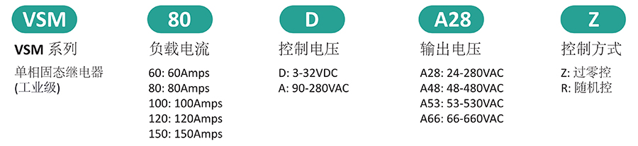 • 开关型式分为过零导通型和随机导通型。